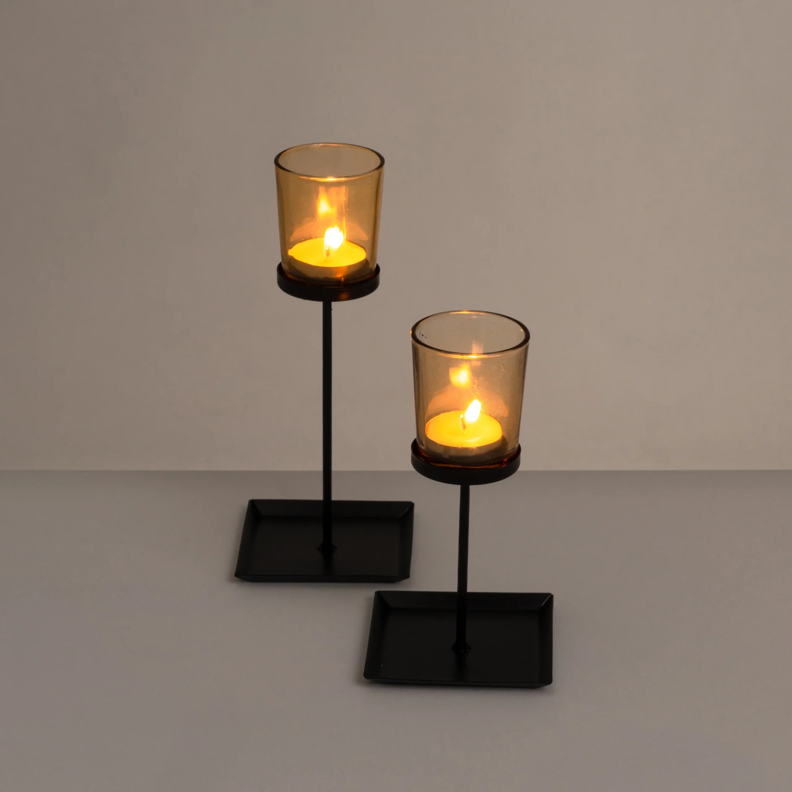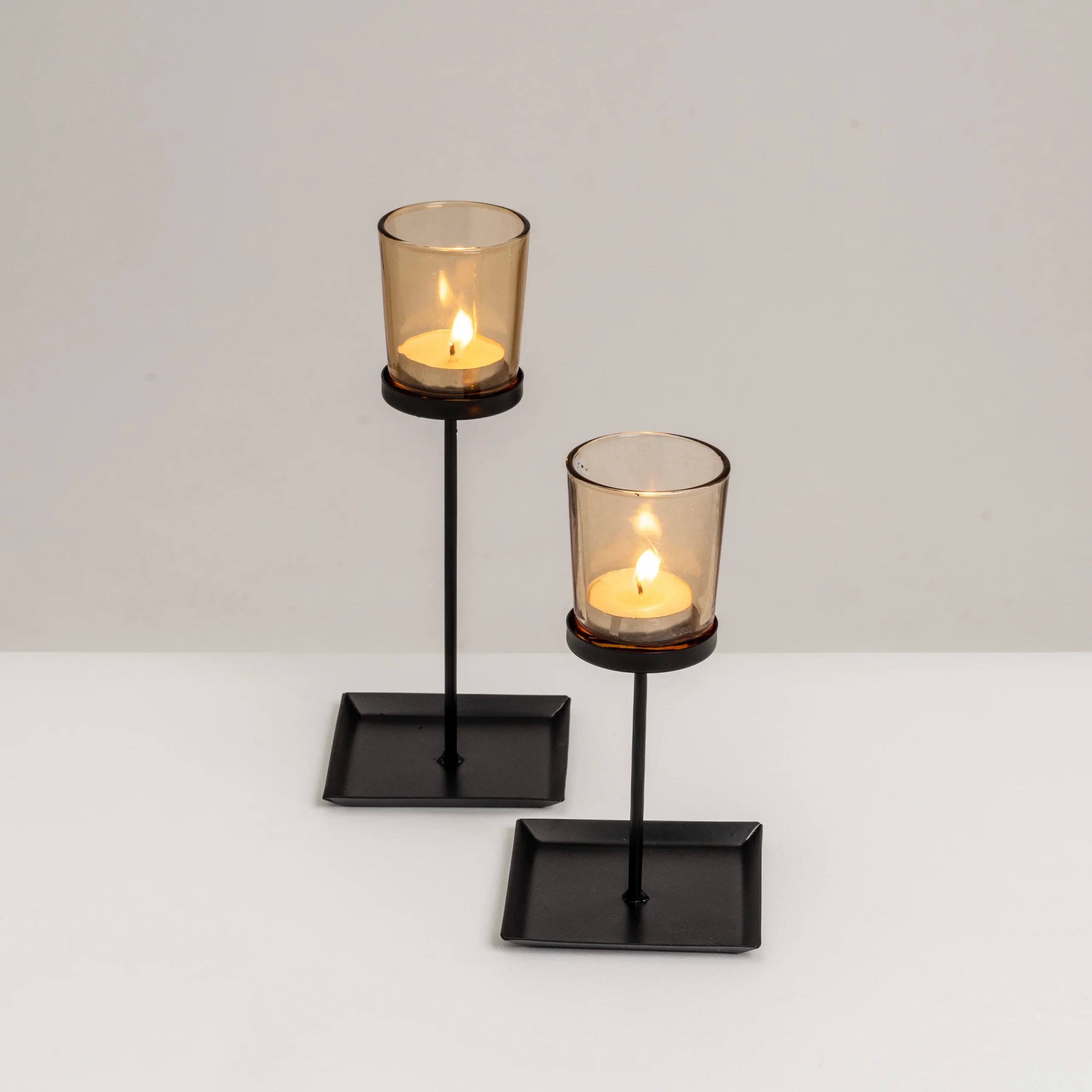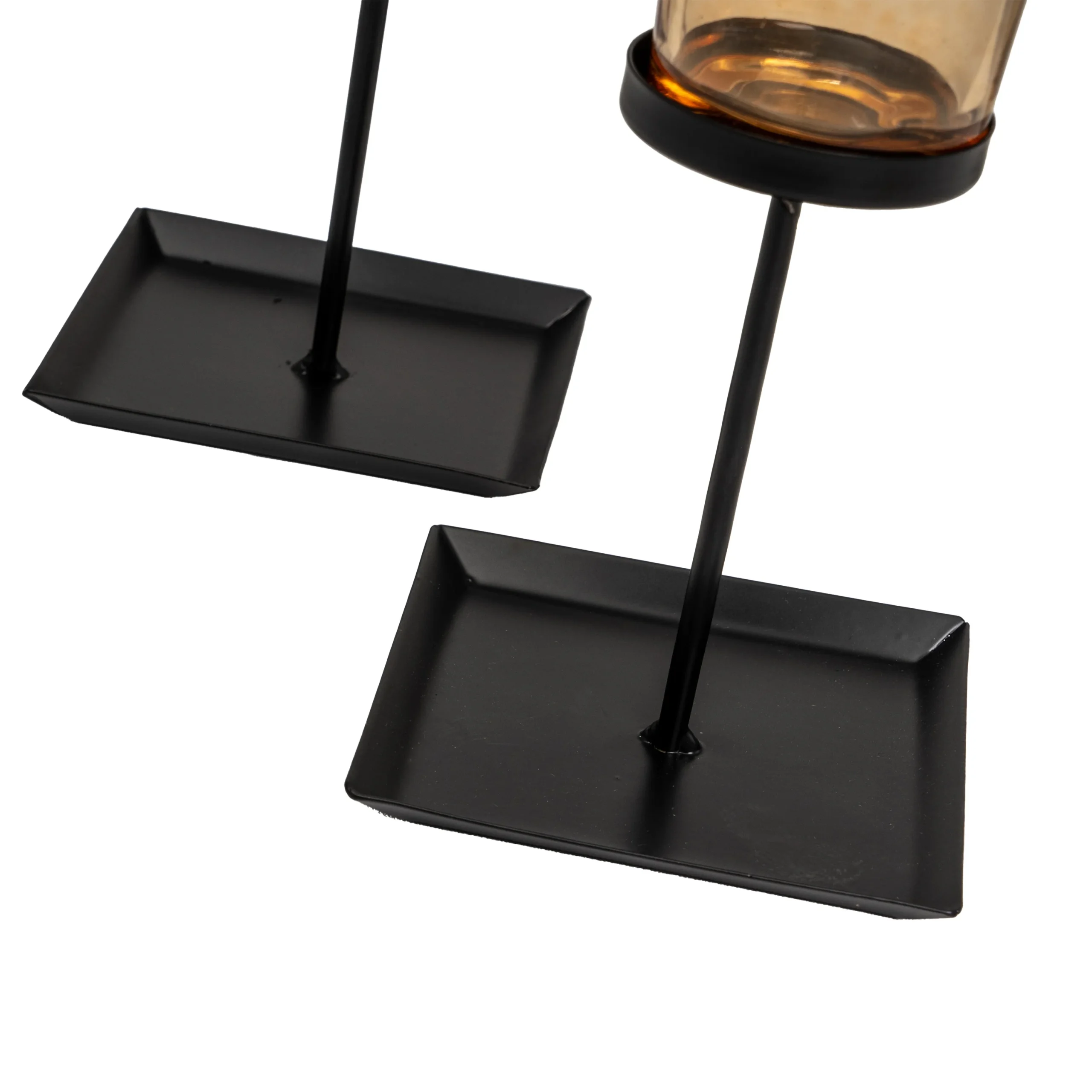 2 PORTAVELAS METAL-CRISTAL NEGRO
