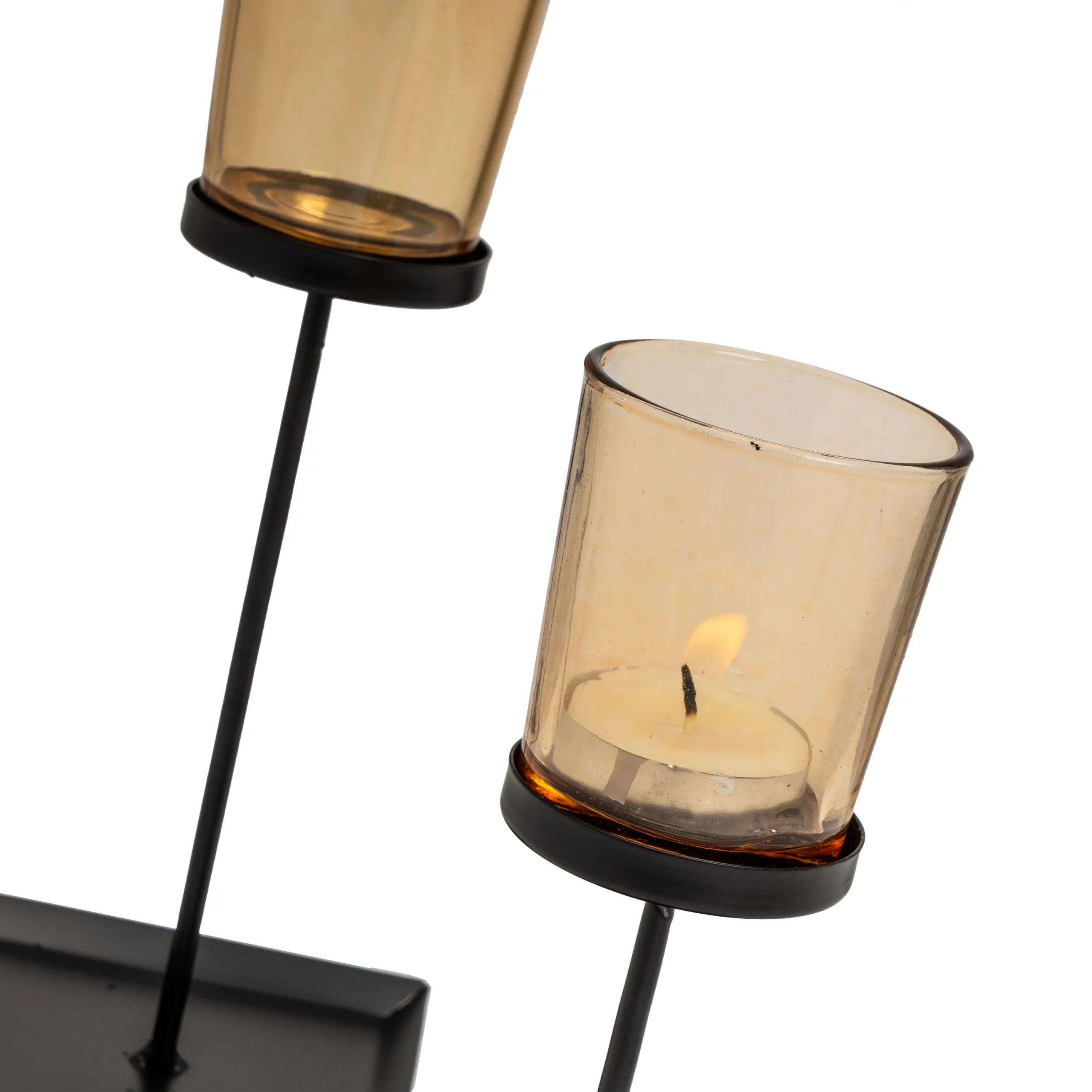 2 portavelas metal-cristal negro