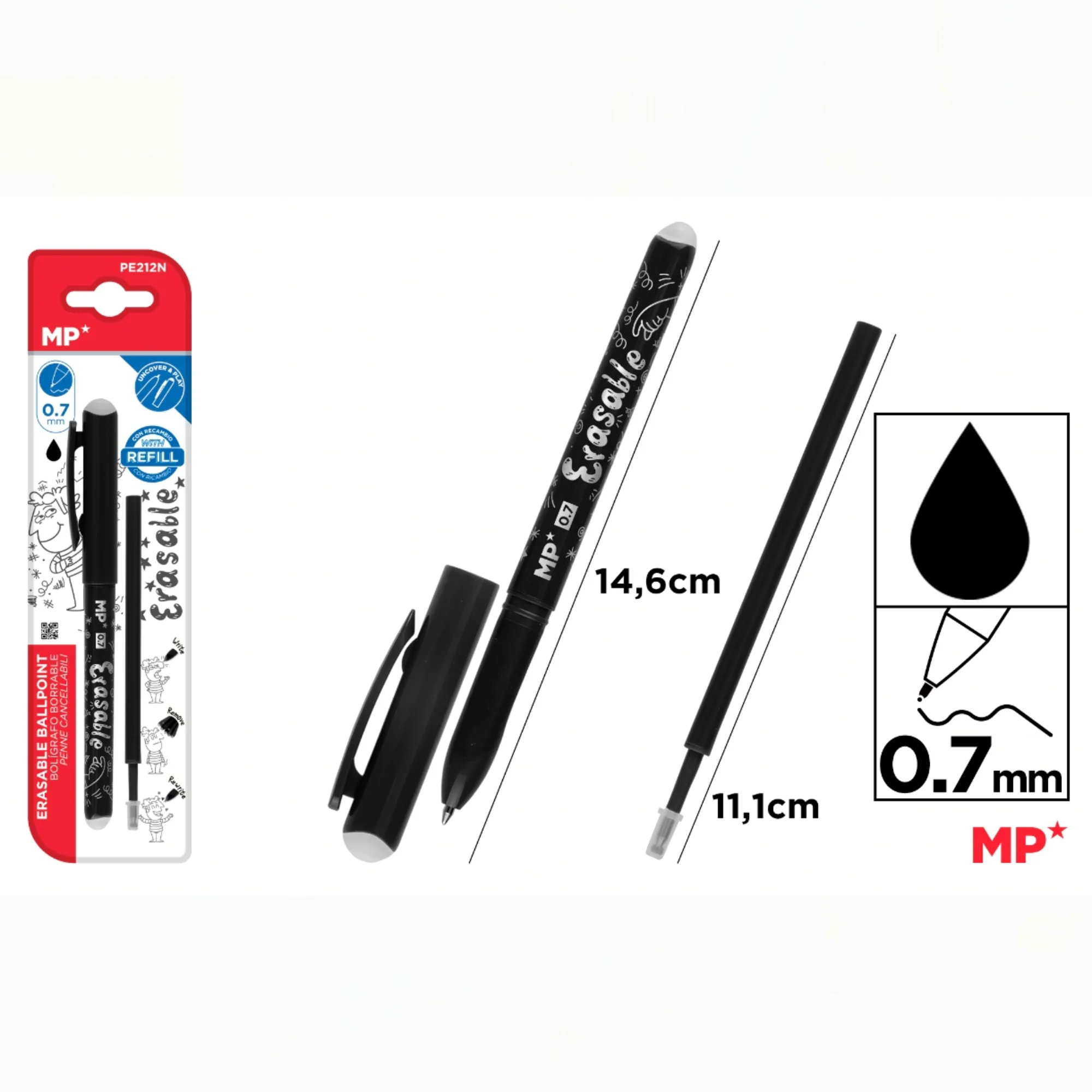Bolígrafo Borrable 0.7mm + Recambio – MP