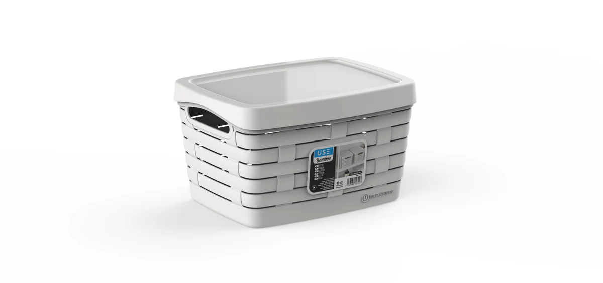 Cesta pequeña con tapa serie BAMBOO blanco