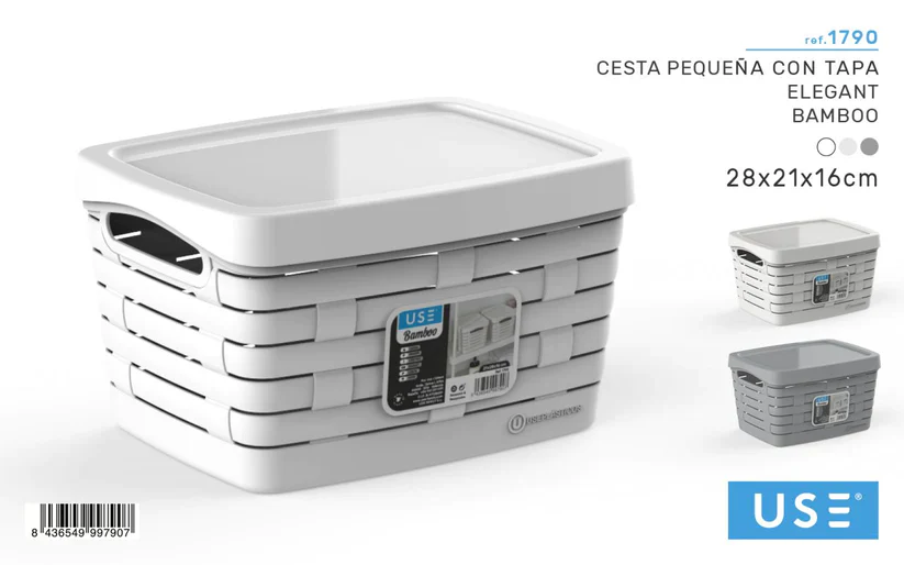 HECHO con MATERIAL TOTALMENTE RECICLABLE- Que mejor manera de organizar tu hogar y colaborar con el medio ambiente para crear un mundo mejor. MULTIPLICA tus POSIBILIDADES – Estos lotes de cestas, con su variedad en tamaños, permite organizar desde productos de cosmética hasta prendas de ropa, juguetes y más. Además, estas cestas están fabricadas en plástico libre de BPA con alta solidez a la luz del sol, por lo que son aptas para exterior. FABRICADO Y DISEÑADO EN ESPAÑA – Somos fabricantes comprometidos con el medio ambiente. Las cestas de almacenaje decorativas Bamboo, nuestro compromiso.
