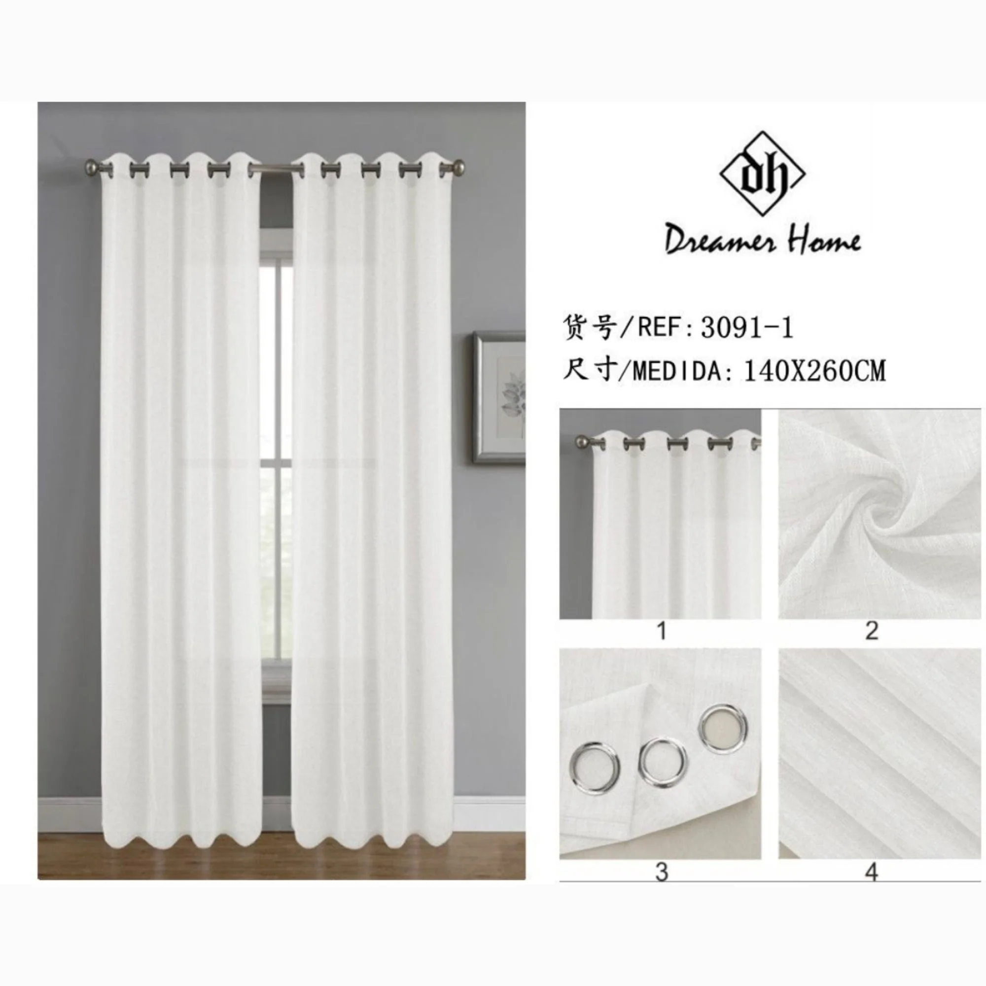 • Visillo listo para colocar, acabado con ojales