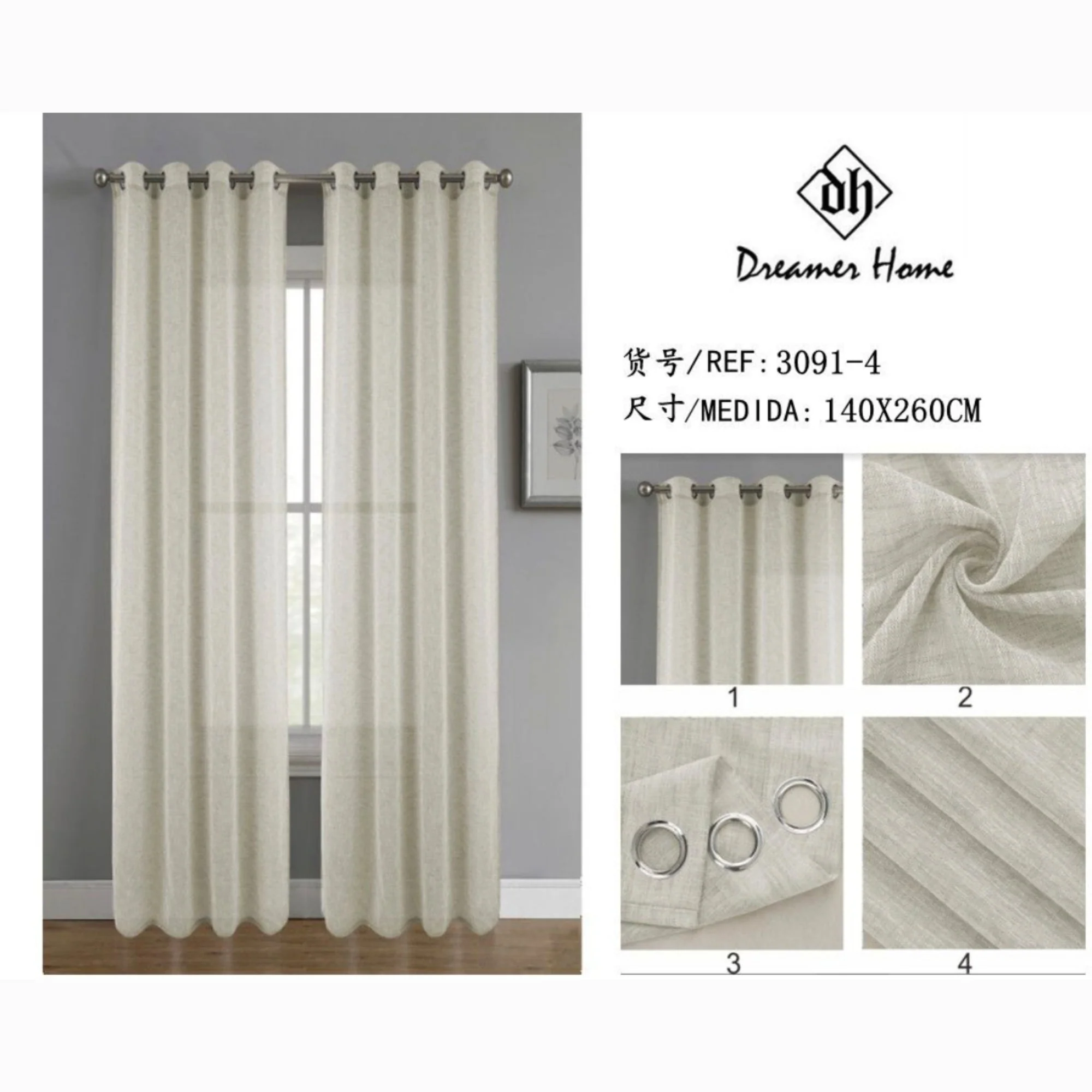 Cortina visillo lino 140*260cm gris claro